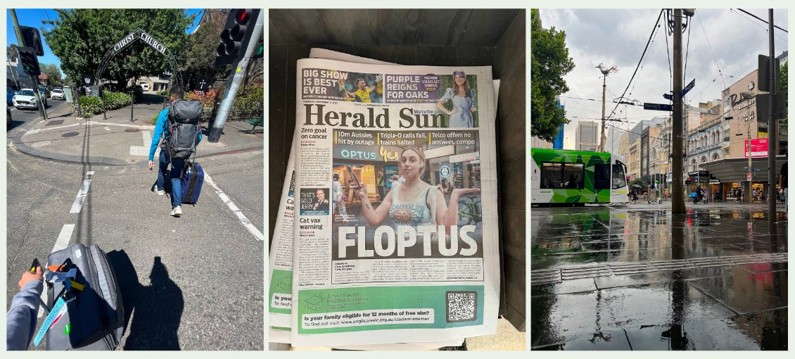 But our sims wouldn’t work. We visited two other Optus branches to help diagnose the issues only to discover the telco was suffering from a nationwide outage. Because of the time spent with Optus, the CommBank branch we planned to visit was closed when we arrived.
