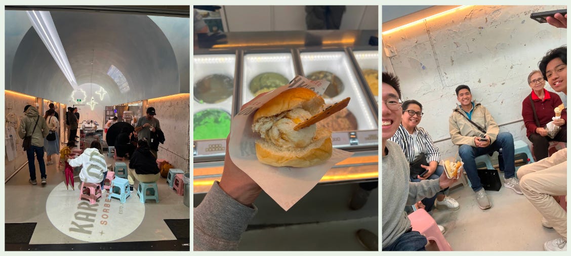 Then we asked the cashier, and lo and behold, behind her was a container of pandesal! We couldn’t stop laughing about it. Kariton definitely got your Filipino ice cream experience down.